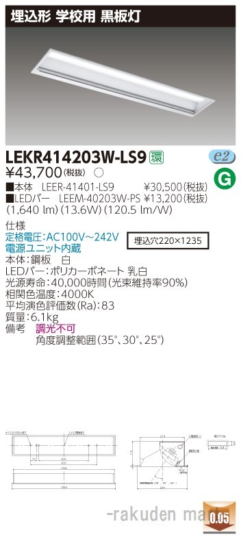 東芝ライテック LEKR414203W-LS9 TENQOO埋込40形黒板灯
