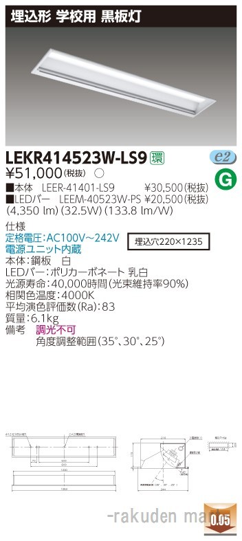 東芝ライテック LEKR414523W-LS9 TENQOO埋込40形黒板灯