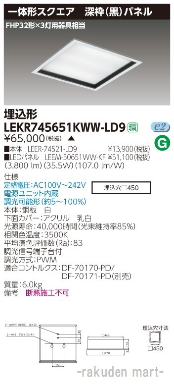 東芝ライテック LEKR745651KWW-LD9 ベースライト□450深枠黒WW色