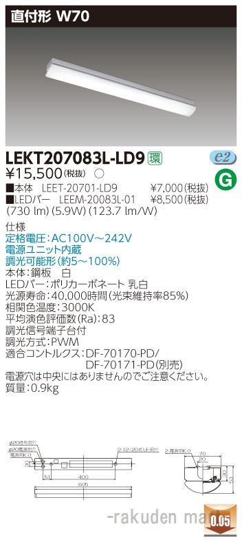 東芝ライテック LEKT207083L-LD9 TENQOO直付20形W70調光