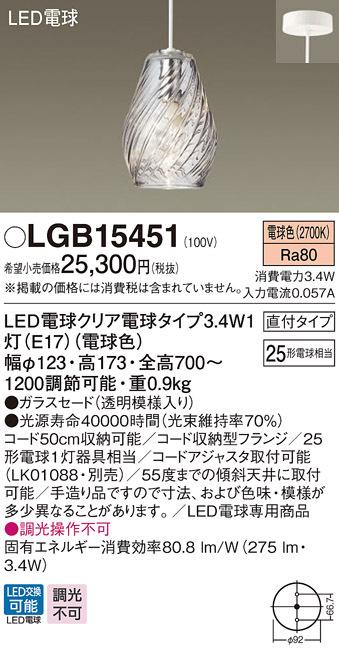 パナソニック LGB15451 LEDペンダント25形電球色 Panasonic