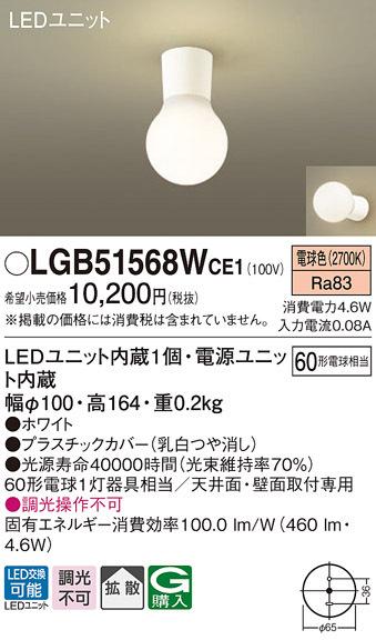パナソニック LGB51568WCE1 LEDシーリングライト60形電球色 Panasonic