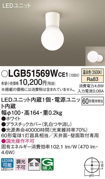 パナソニック LGB51569WCE1 LEDシーリングライト60形温白色 Panasonic