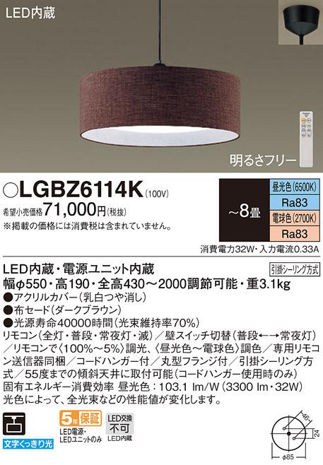 パナソニック LGBZ6114K ペンダント8畳用調色 Panasonic