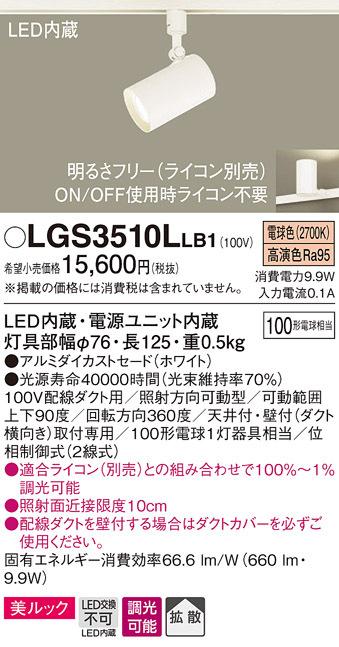 パナソニック LGS3510LLB1 スポットライト100形X1拡散電球 Panasonic