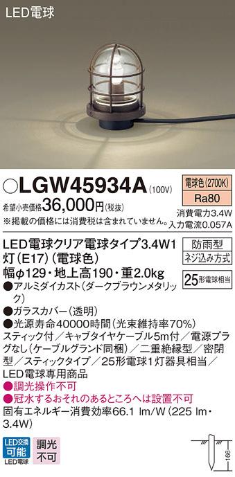 パナソニック LGW45934A LEDガーデンライト25形X1電球色 Panasonic