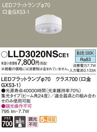 パナソニック LLD3020NSCE1 LEDフラットランプΦ70集光タイプ Panasonic