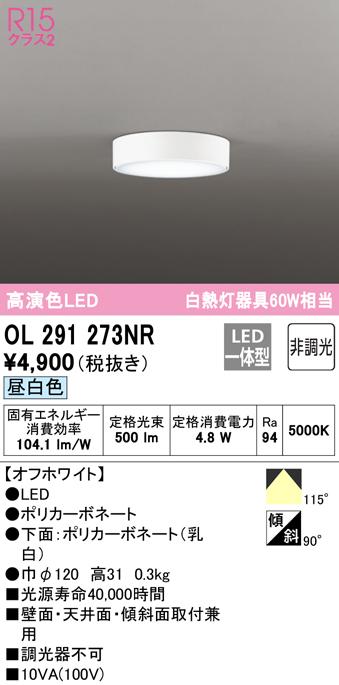 オーデリック OL291273NR 小型シーリングライト LED一体型 昼白色 非調光 ODELIC