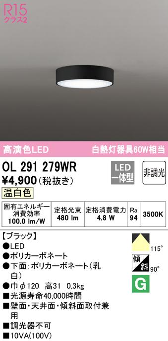 オーデリック OL291279WR 小型シーリングライト LED一体型 温白色 非調光 ODELIC