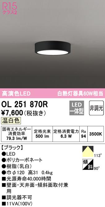 オーデリック OL251870R 小型シーリングライト LED一体型 温白色 非調光 ODELIC