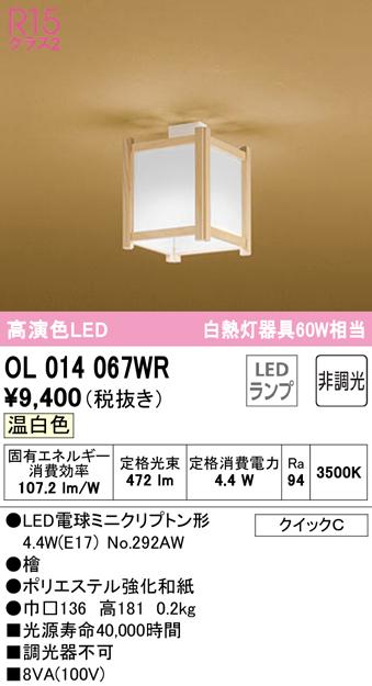 オーデリック OL014067WR 小型シーリングライト LEDランプ 温白色 非調光 ODELIC