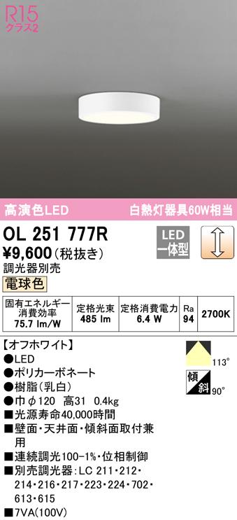オーデリック OL251777R 小型シーリングライト LED一体型 電球色 調光 ODELIC