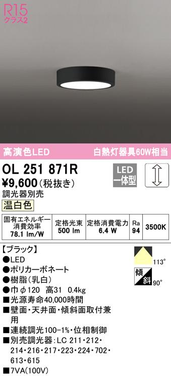 オーデリック OL251871R 小型シーリングライト LED一体型 温白色 調光 ODELIC