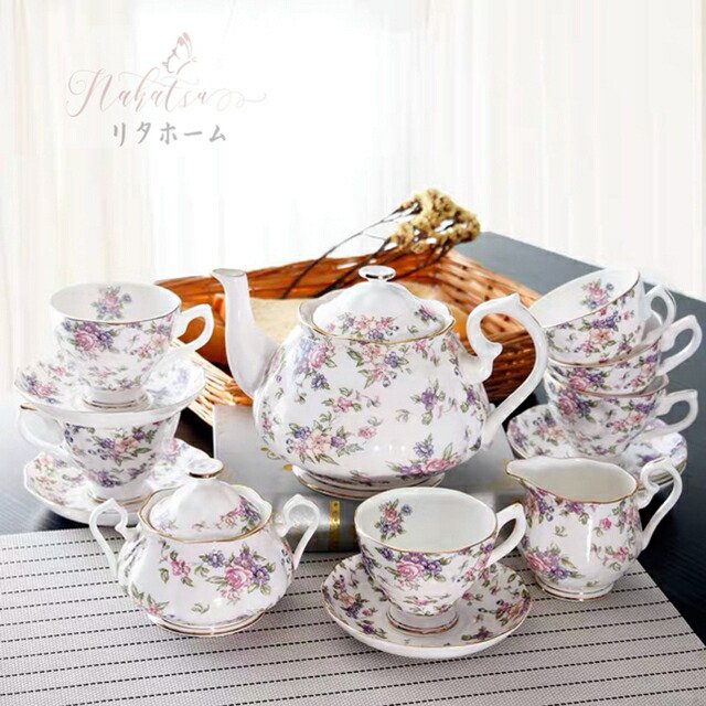 ティーポットがついた6個組のティーセットです。洋にも和にも見えるデザインがとてもお洒落です。