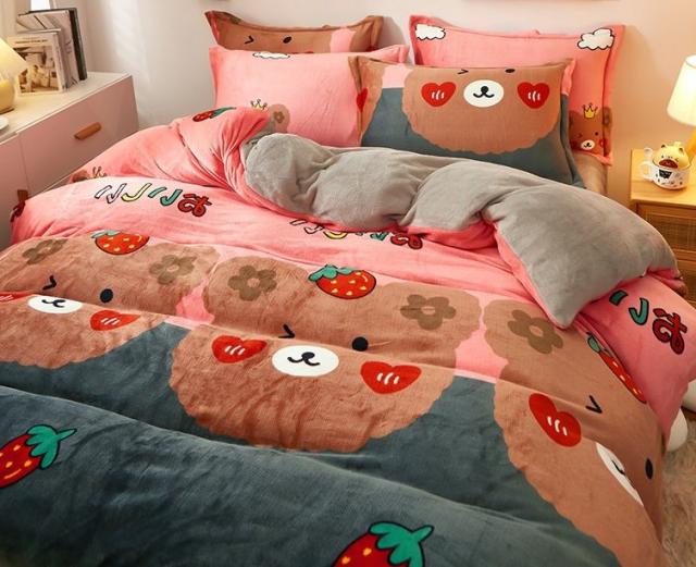 BS32冬用フランネル寝具 ワイドダブル ベッド用品4点セット ボックスシーツ