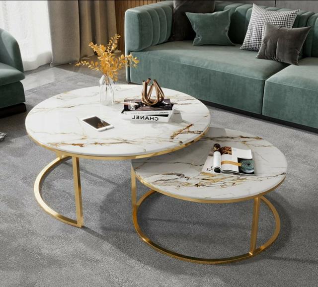 高級寝室用テーブル 人造大理石ローテーブル リビングテーブル センターテーブル サイドテーブル 2点セット