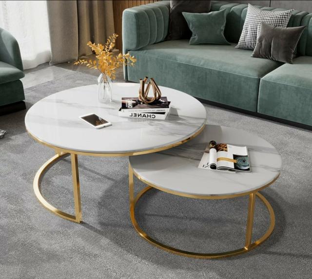 高級寝室用テーブル 人造大理石ローテーブル リビングテーブル センターテーブル サイドテーブル 2点セット
