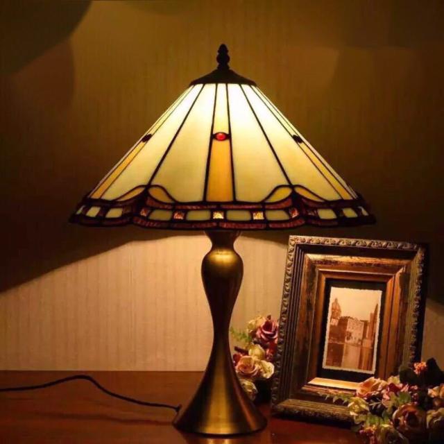 ステンドグラスランプ 卓上スタンド 豪華テーブルランプ 卓上照明 ガラス工芸スタンド.銅スタンド