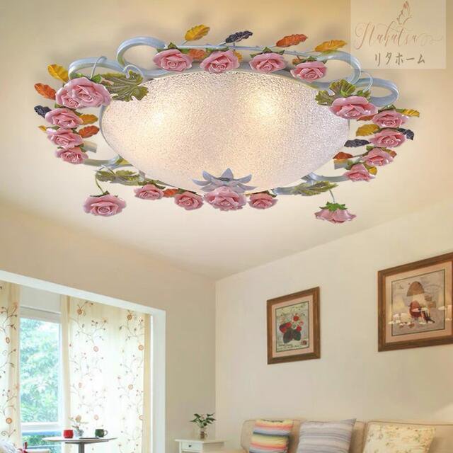 姫系雑貨 居間ランプ 洋風天井照明 おしゃれ照明 電源直結タイプ