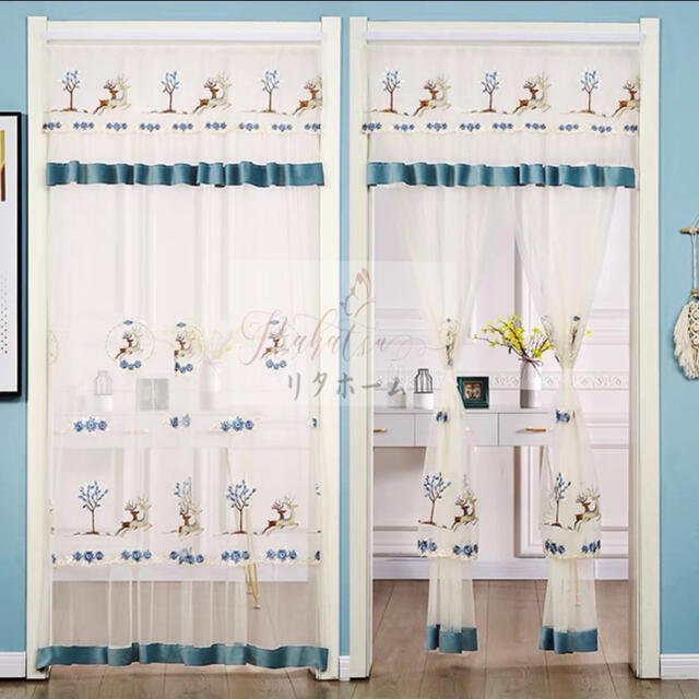 のれん ロング 2重 レース フラワー柄 姫系二重タイプ 暖簾 間切り