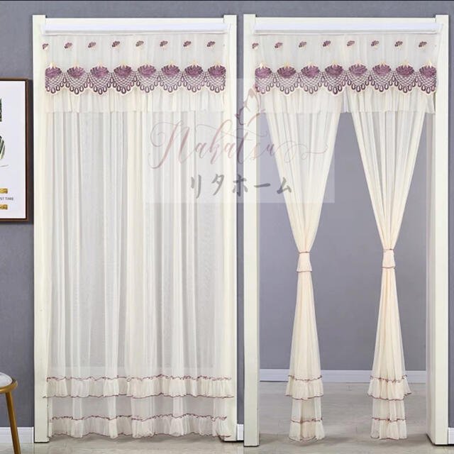 のれん ロング 2重 レース フラワー柄 姫系二重タイプ 暖簾 間切り