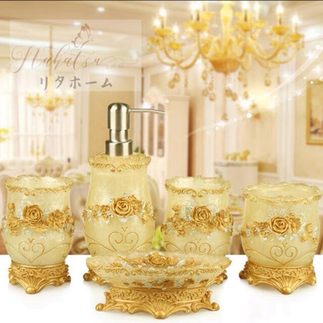 高級感のある落ち着いたデザインのサニタリーセット5点です。