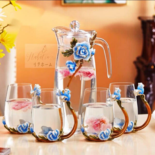 花柄ガラス製 ティーカップ セット食器 コーヒーカップ 豪華カップセット