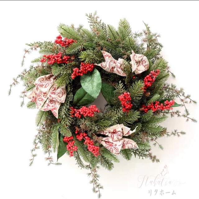 クリスマスリース クリスマス花輪 ドアリース 壁飾り 人工造花 デラックスリース
