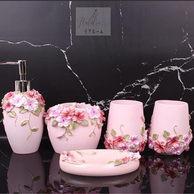 薔薇サニタリー5点セット ヨーロッパ風 ディスペンサー 歯ブラシスタンド 洗面所