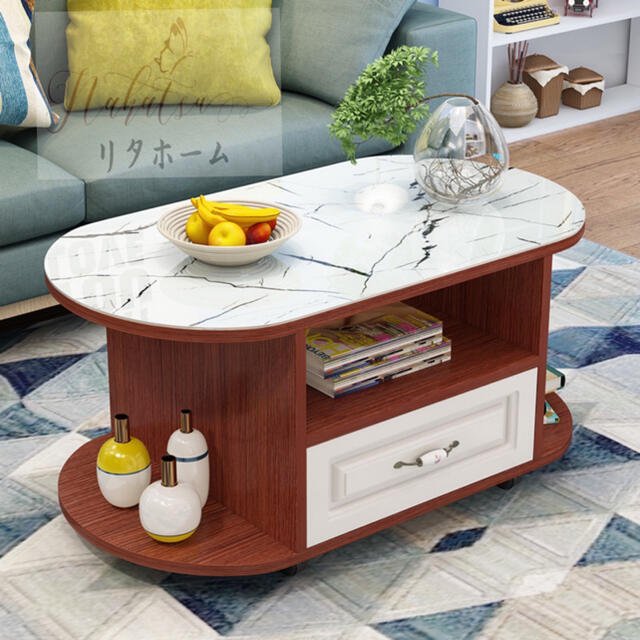 ローテーブル リビングテーブル 収納付き 強化ガラス センターテーブル