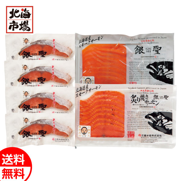 三國シェフ推奨 漁吉丸の銀聖切身&スモークサーモン炙り焼きセット 送料無料 北海道海産ギフト 内祝 御供 卒業 入学 ホワイトデー プレゼント