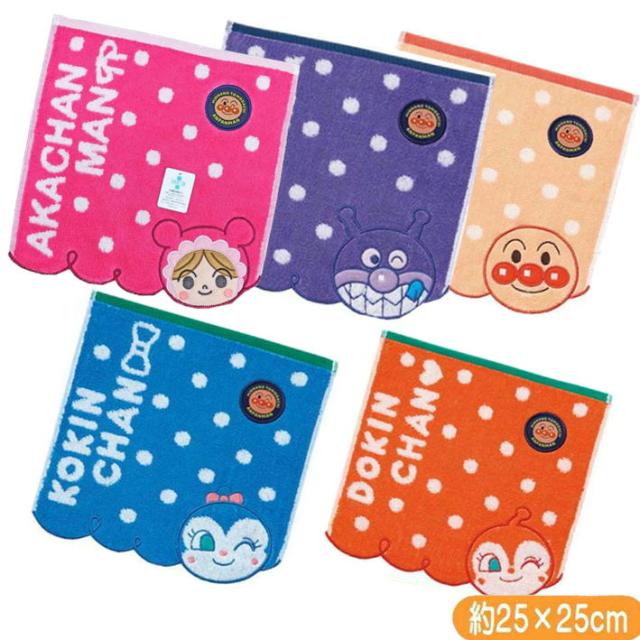 アンパンマン ミニタオル こんにちは! アップリケ 刺繍 キャラクター タオルハンカチ ばいきんまん ドキンちゃん コキンちゃん あかちゃんまん 丸眞 アンパンマンタオル