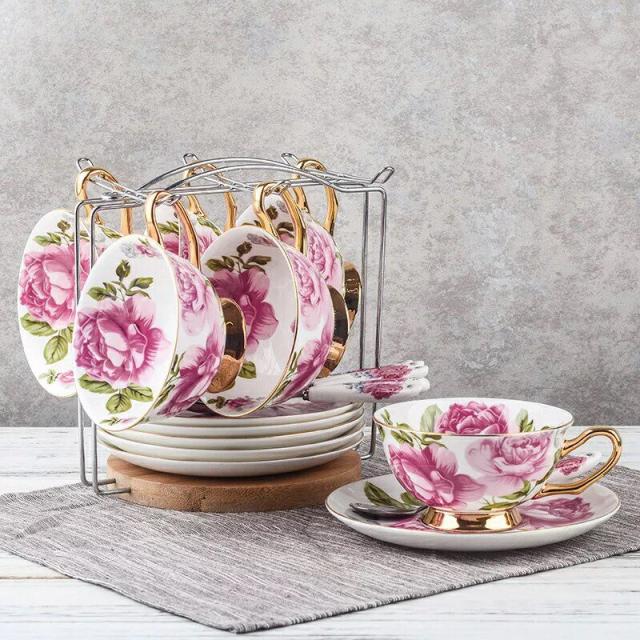 ティー・コーヒーカップセット カップ&ソーサー6客セット 花柄 豪華カップ 姫系雑貨 陶磁器ティーセット
