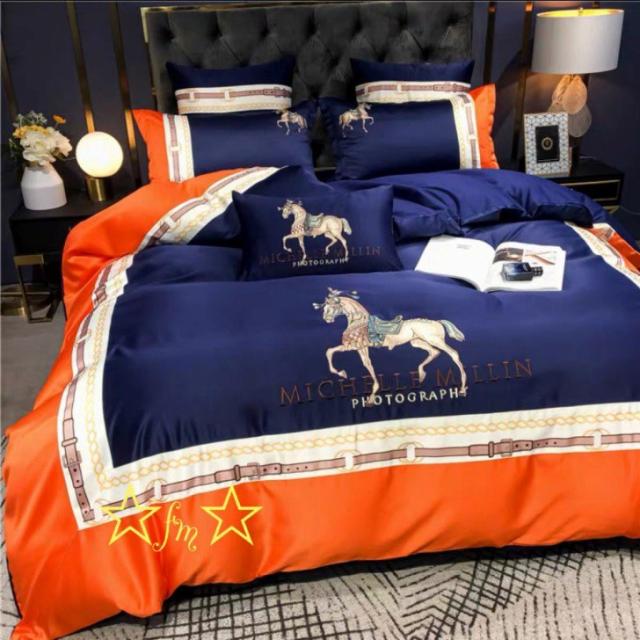 高級ワイドダブル ベッド用品4点セット 寝具 ボックスシーツ 枕カバー掛け布団カバー ベッドカバー