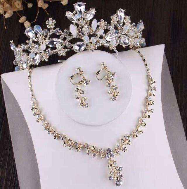 ウェディング 花嫁3点セット アクセサリー ティアラ+イヤリング+ネックレス.