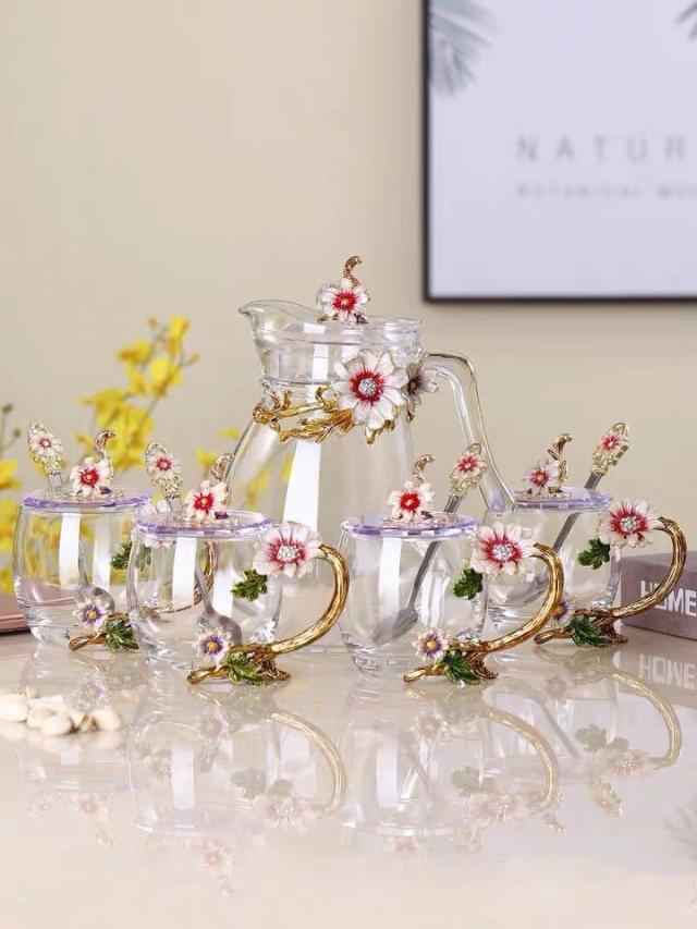 西洋ティー・コーヒーカップセット ガラス製カップ4客セット 花柄
