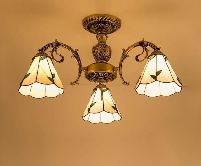 天井照明ステンドグラス ペンダントライト ステンドグラスランプ ガラス工芸品 電源直結タイプ