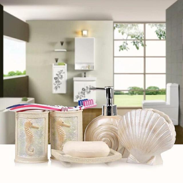 ソープディッシュ サニタリー 洗面用具5点セットホルダー タンブラー ディスペンサー 歯ブラシスタンド バス用品 .姫系雑貨