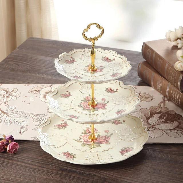 ケーキ スタンド プレート 3段セット アフタヌーンティー フルーツ トレー 皿 花柄薔薇
