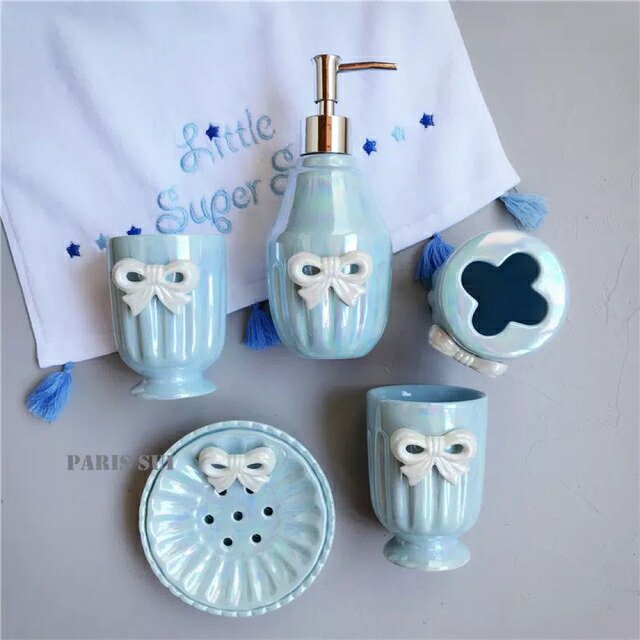 ソープディッシュ サニタリー 洗面用具5点セット歯ブラシスタンド バス用品