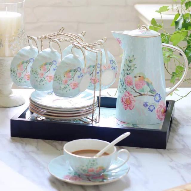 ティー・コーヒーカップセット ★カップ&ソーサー6客セット 陶磁器ティーセット トレー付き
