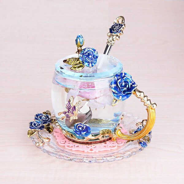 バラ柄ガラス製 ティーカップ 4点セット コーヒーカップ