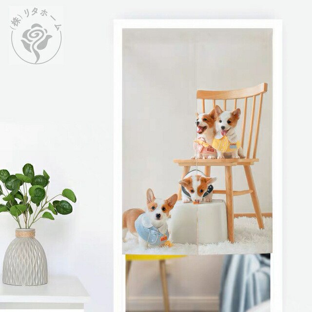犬柄のれん ロング 暖簾80x150cm イヌ かわいい 間仕切りコーギー雑貨