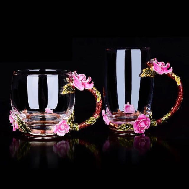 ガラス製 花柄ティーカップ セット食器 コーヒーカップ