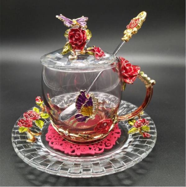 バラ ガラス製 ティーカップ 4点セット食器 コーヒーカップ