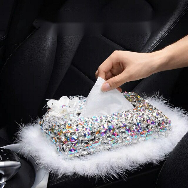 クリスタル ラインストーン飾り 高級感 上品ティッシュケース 車用 キラキラ