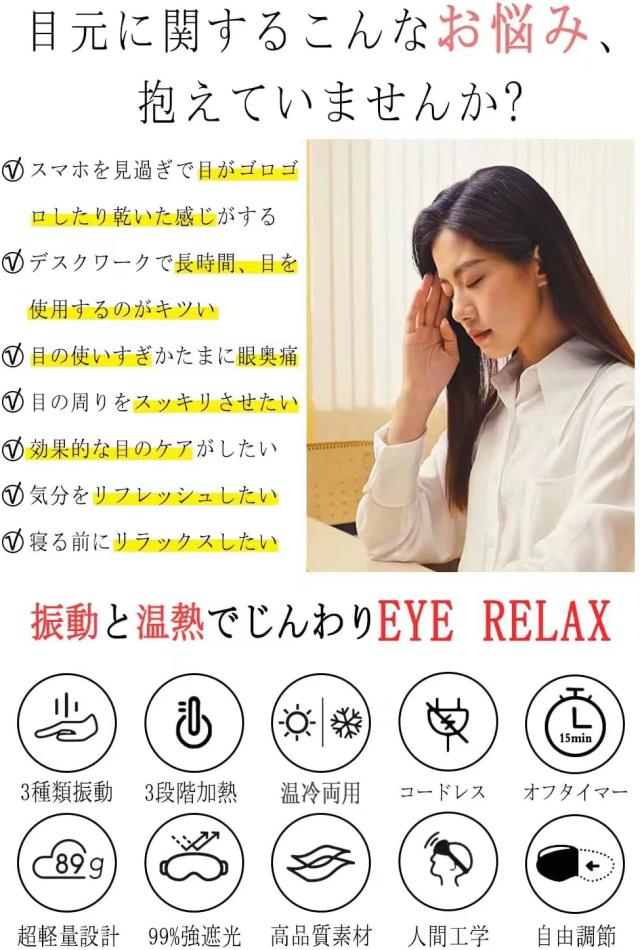 【目元集中ケア&1台で本格目元スパ】パソコンやスマートフォンで酷使しがちな目元に、独創開発ホットアイマスクを。