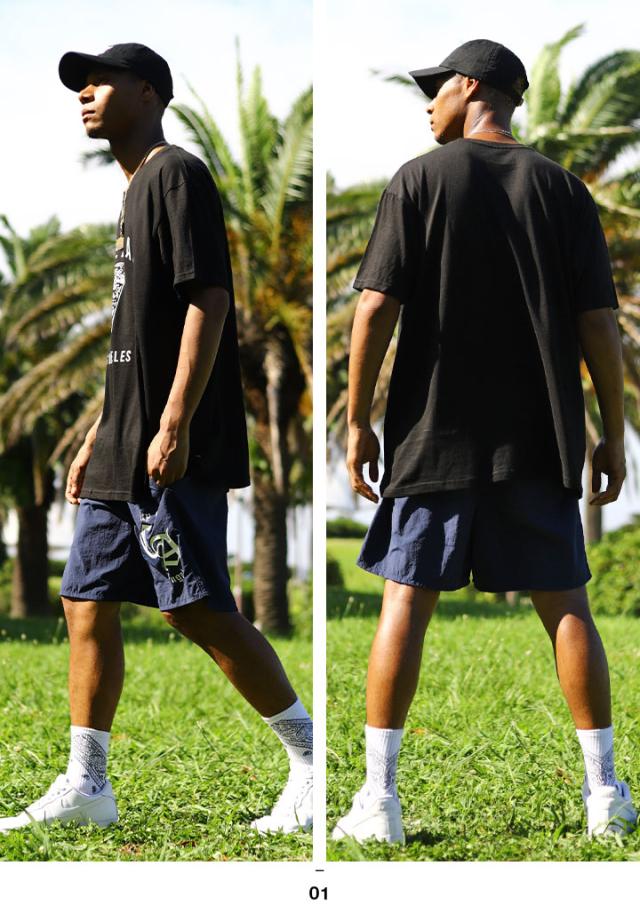送料込 M-2XL おしゃれ かっこいい スケートボード ロゴ 上下 シンプル オーバーサイズ ビッグシルエット セット ストリート 撥水 ナイロン 半ズボン 短パン 水着 海パン バーサタイル