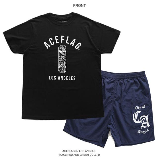 【50%OFF】ACE FLAG 上下セット 半袖 ブランド Tシャツ ハーフパンツ メンズ 春夏用 全2色 大きいサイズ エースフラッグ セットアップ スケボー b系 ヒップホップ ファッション ストリート系 ハイ 新作 AF-SE-TS-104