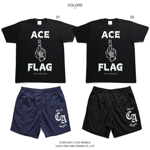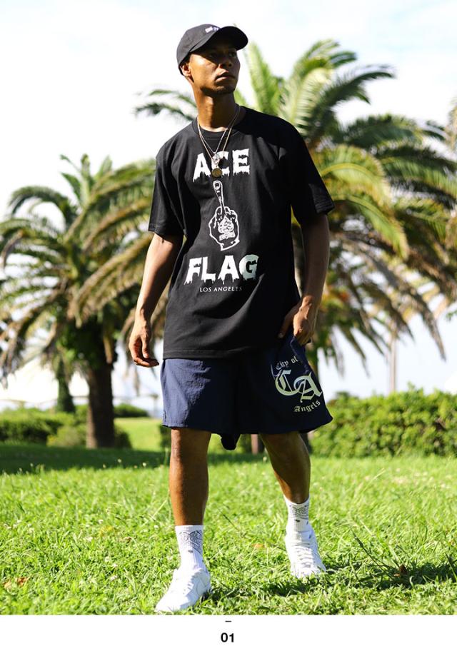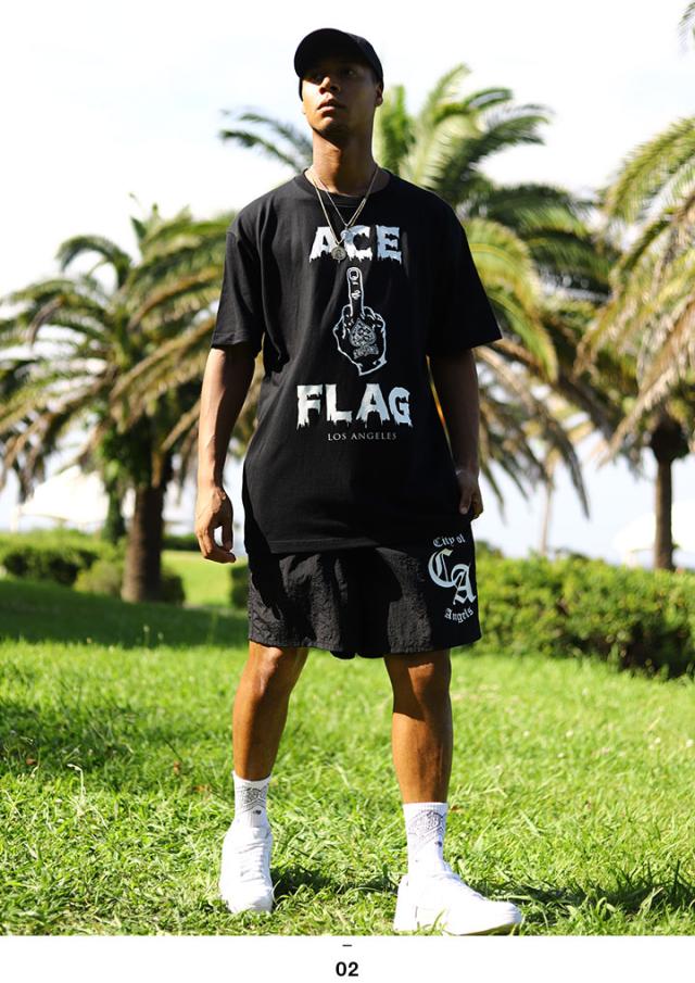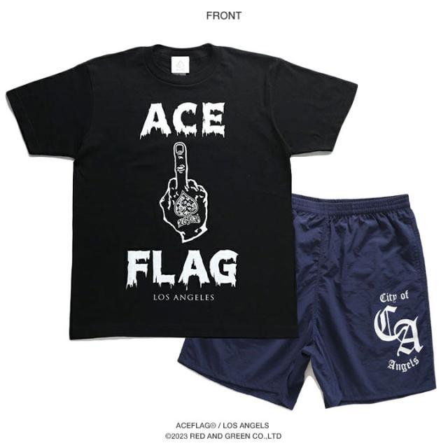 【50%OFF】ACE FLAG 上下セット 半袖 ブランド Tシャツ ハーフパンツ メンズ 全2色 大きいサイズ エースフラッグ セットアップ ビッグシルエット 中指 ファックサイン ペイズリー b系 ストリート系 ハイ 夏 新作 AF-SE-TS-103